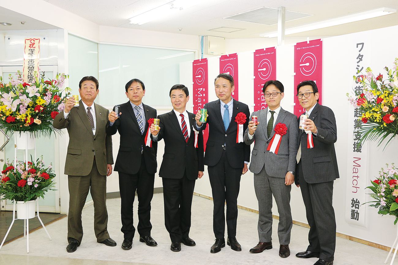 このプロジェクトは、個性豊かに生きる人、自分らしく生きる人を増やすことによって、取手市を活気づかせようという取り組みです。 町ぐるみで行われるのは全国初。取手ウェルネスプラザで行われたオープニングセレモニーには、取手市内、茨城県内はもとより、日本全国から200名を超える方々が参加。 「ワタシの街の起業支援 Match」の運営母体「一般社団法人とりで起業家支援ネットワーク」の代表理事を務める藤井信吾取手市長の「起業家タウンとりで」宣言により幕が上がりました。 続いて、場所をJR取手駅西口前リボンとりで5階に移して行われた「オープニングパーティ」&「ワタシの街のレンタルオフィスMatch-hako内覧会」。 菊地城一郎取手市商工会会長の乾杯から、和やかな囲気で執り行われましたが、地域を元気にしたいという思いを持つ同志が集まったこともあって、地域の未来を熱く語り合い、地域の発展を固く誓い合う場となりました。