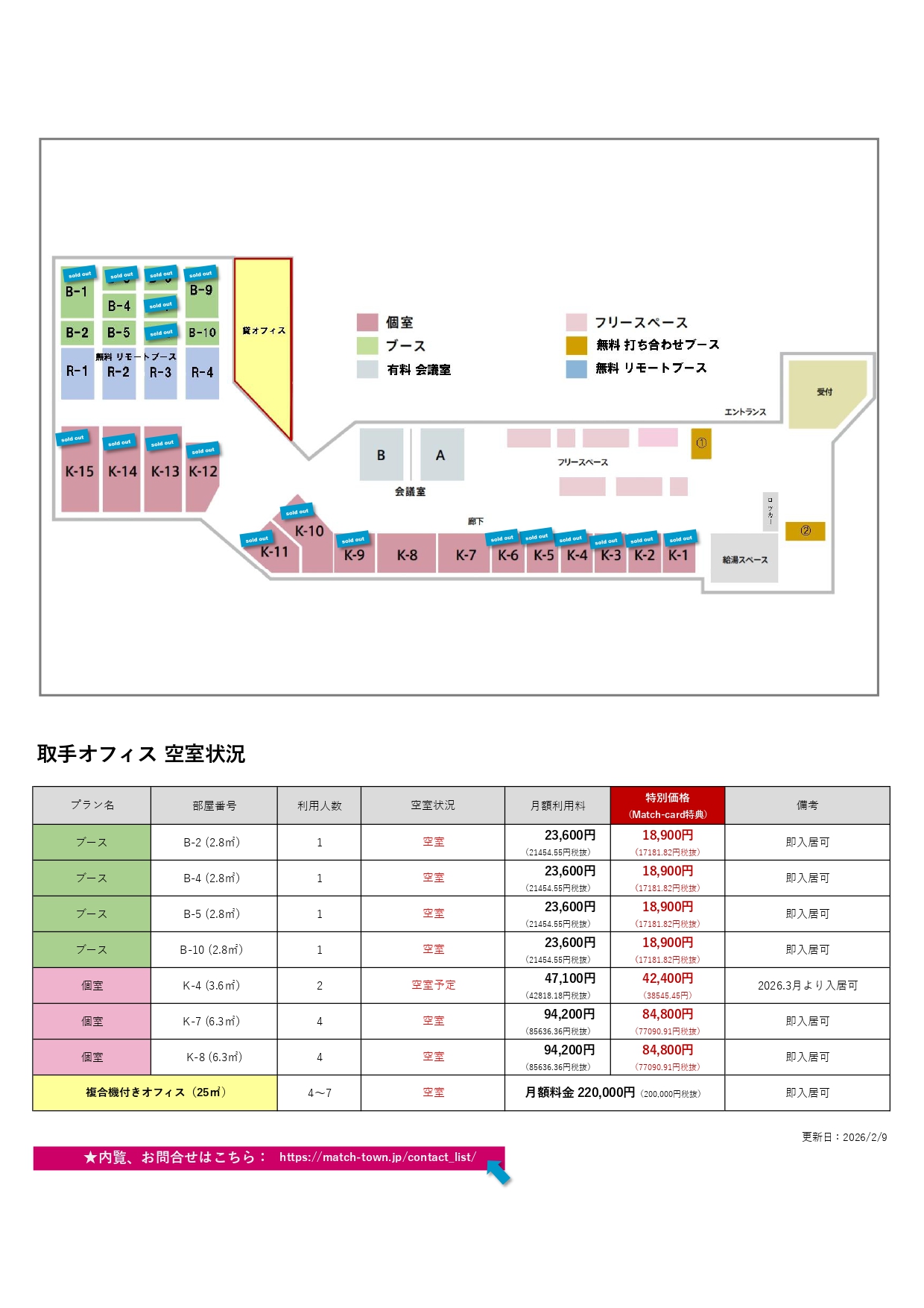 ドロップイン・バーチャルオフィス・ブース・個室プラン料金