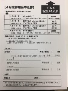 それぞれ取手ウェルネスプラザで開催! 下記の用紙に記入し、FAXかE―mailでお申込みください。
