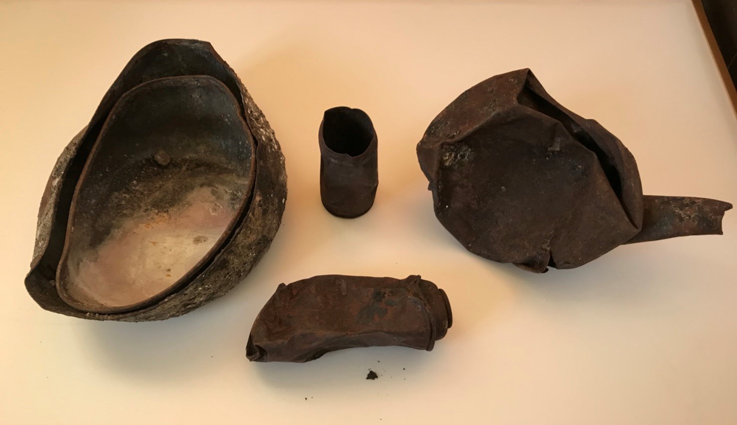 鍋・空き缶(下は家庭用のガスボンベ)・やかん です。