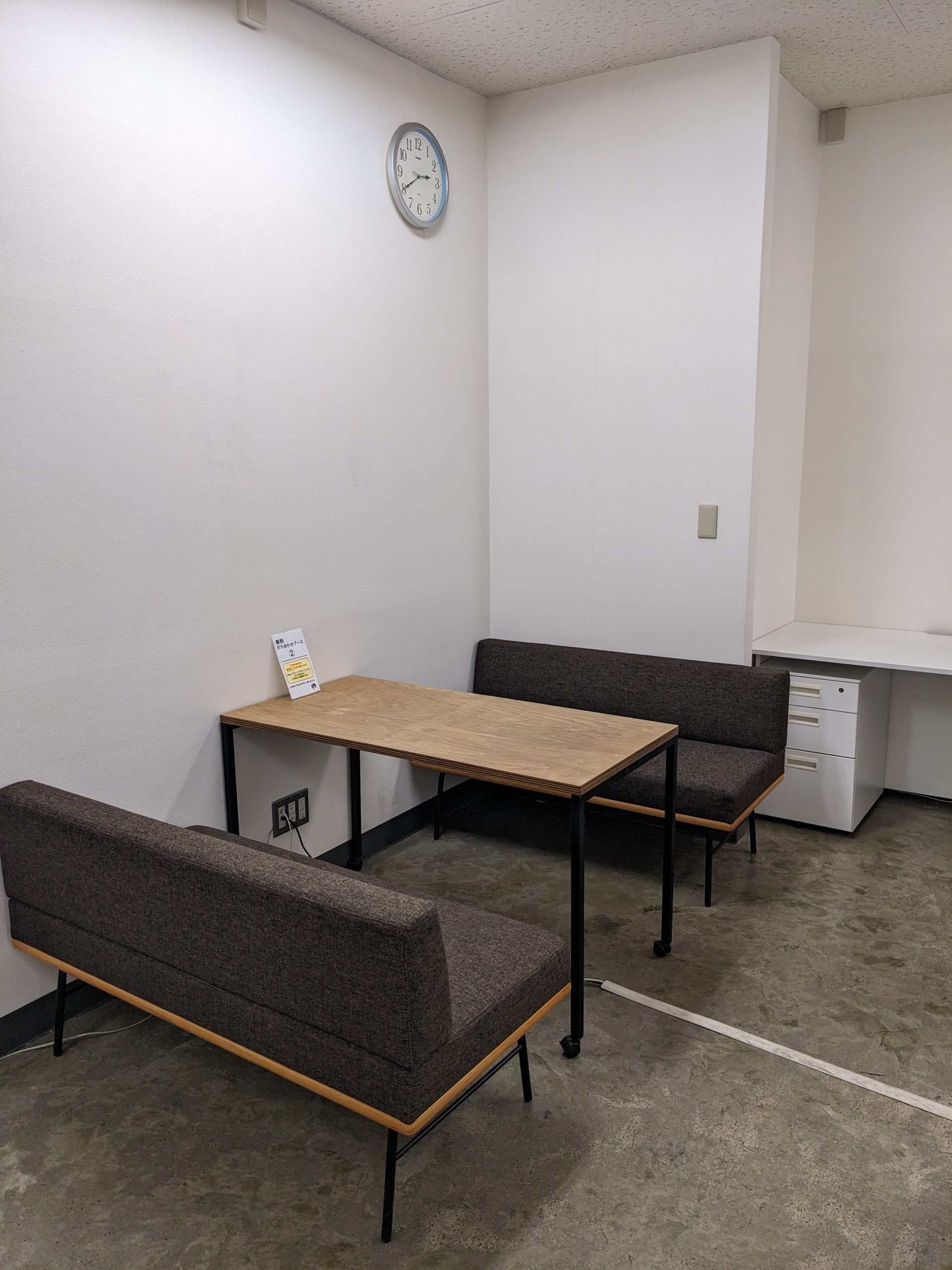 今までの打ち合わせブースはフリースペースの一角にあり、