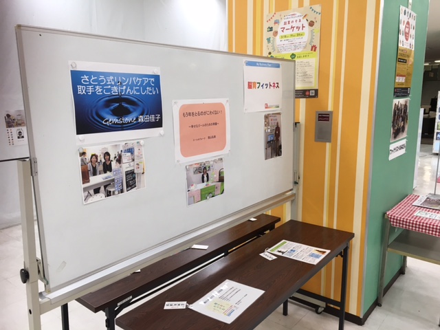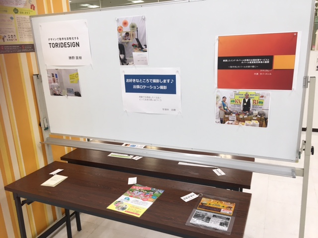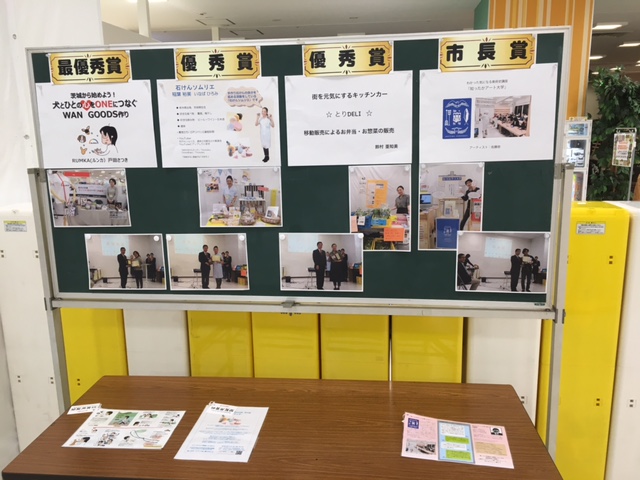 取手で初開催だったビジネスコンテストからもう1ヶ月経ちましたが、開催時の記録をリボンとりでの3階で展示して頂いております。