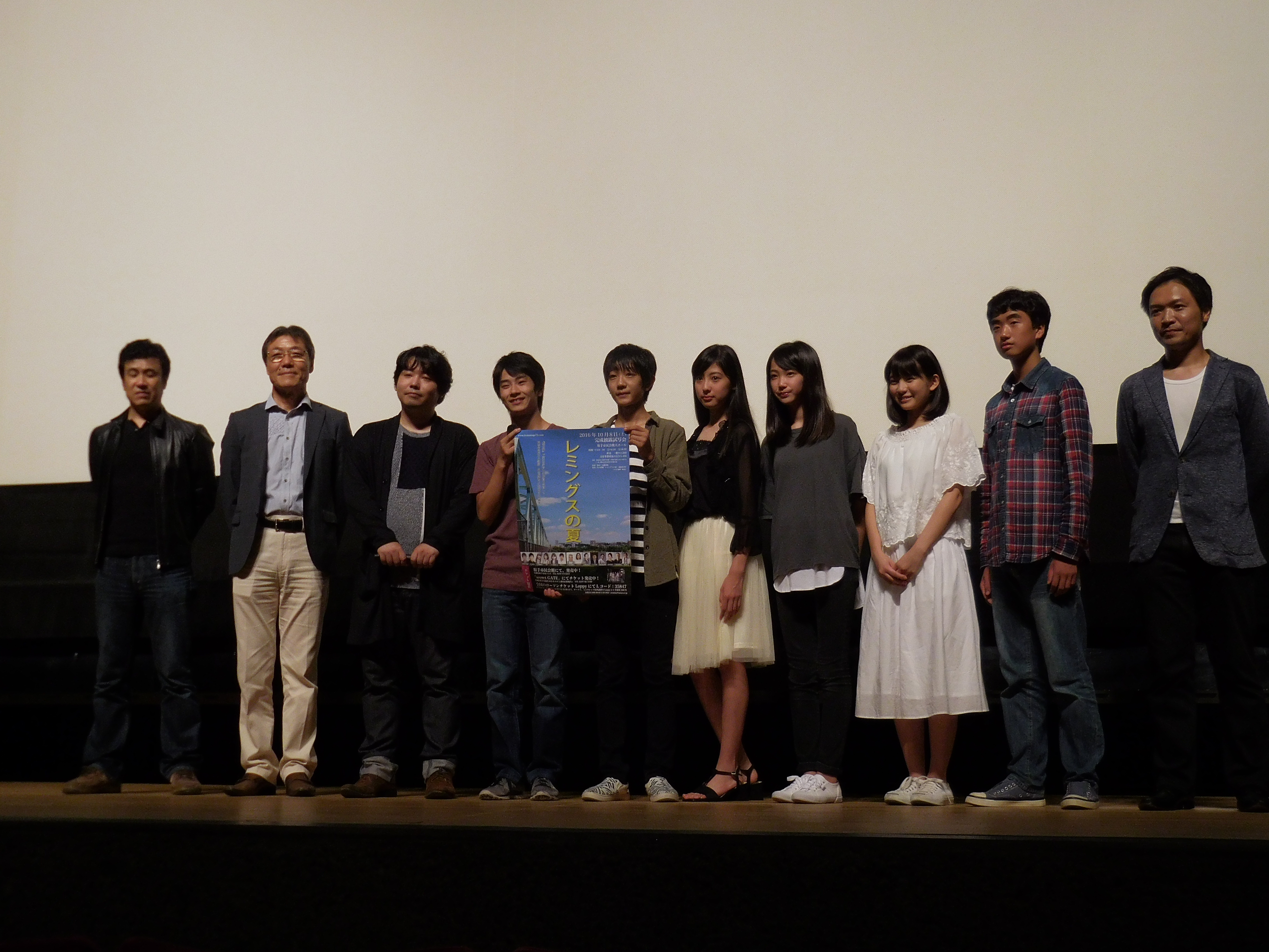 去る10月8日(土)、取手市市民会館にて、映画「レミングスの夏」の完成披露試写会が行われました。3回の上演で、観客は1000人超。この日を楽しみにしていた多くの方々が詰めかけました。
